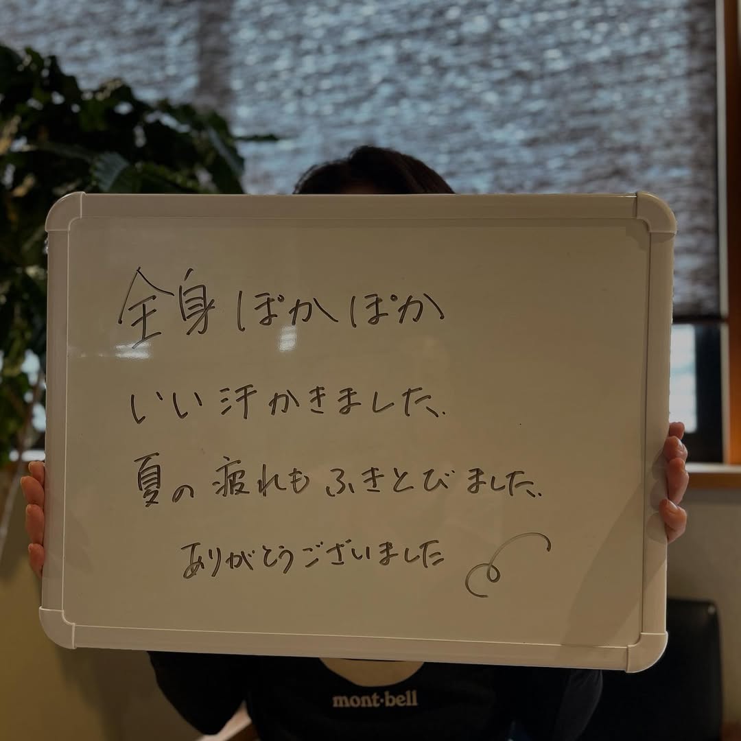 全身ぽかぽかになって、夏の疲れも吹っ飛んだとの嬉しいお声ありがとうございます✨