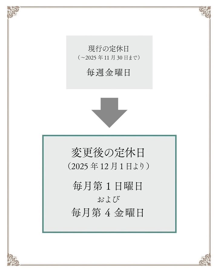 12月より【毎月第一日曜日と第四金曜日】に変更させていただきます。